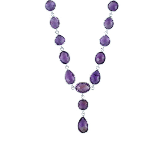 Gargantilla riviere en plata con circonita central color rubíengastada en 4 garras