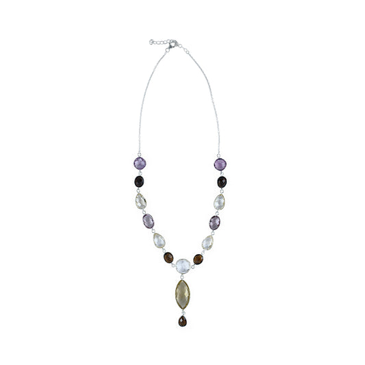 Colgante con baño de oro en forma triangular con piedras semipreciosas