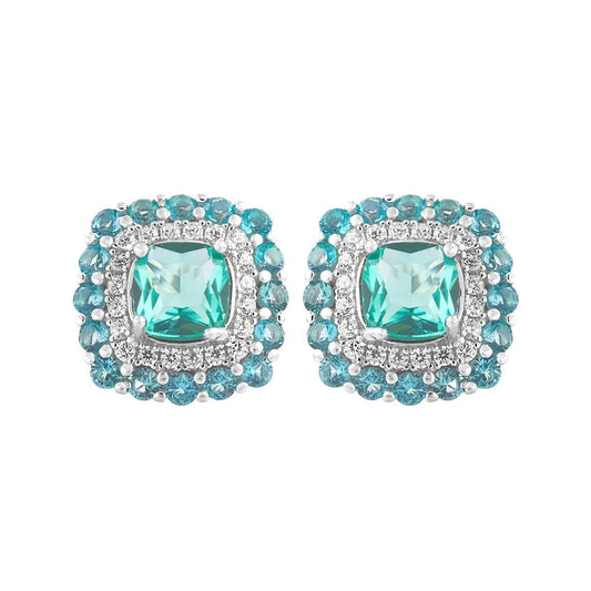Pendientes en plata cuadrados con orla cuajado de circonitas esmeraldas