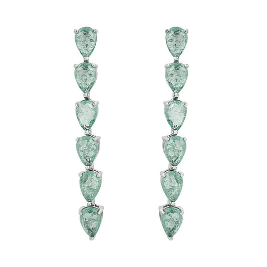 Pendientes largos en plata con 6 circonitas color esmeralda