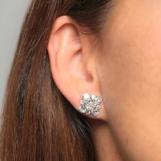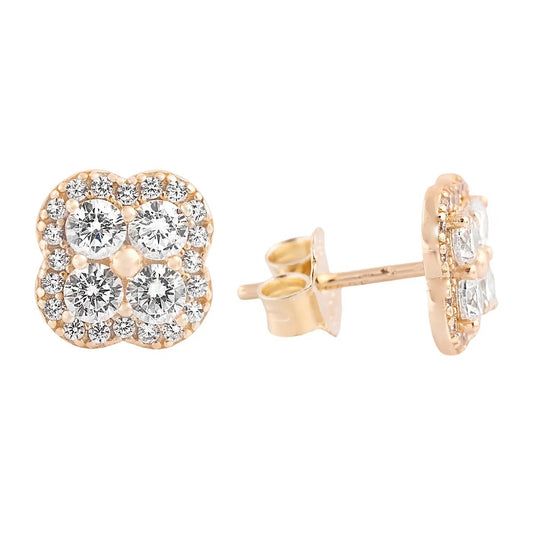 Pendientes en plata con baño de oro con 4 circonitas centrales