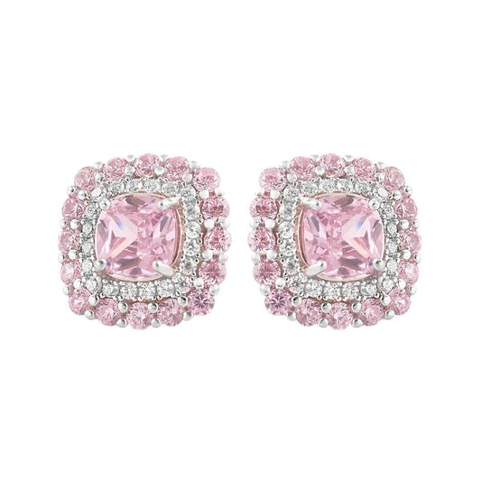 Pendientes en plata cuadrados con orla cuajado de circonitas rosas