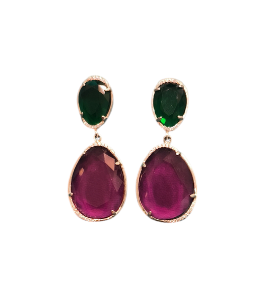 Pendientes largos en plata verde y color rubi