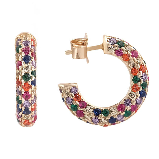 Aros en baño de oro y circonitas de colores