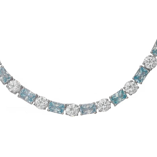Pulsera en plata circonitas aguamarina y blancas