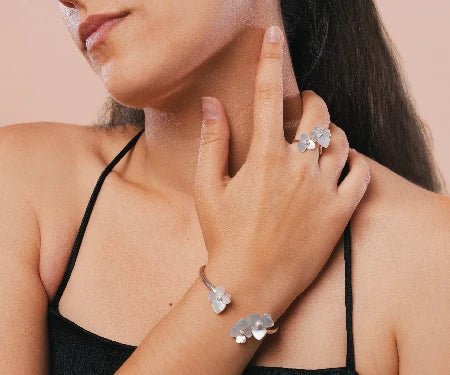 Atrapa las miradas con la colección KAMALA. Piezas en plata combinada con el nácar, entregando elegancia y luz a tu outfit.