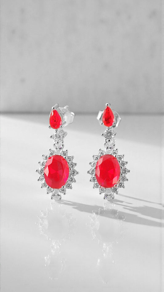 Pendientes largos con circonitas color esmeralda y rubi