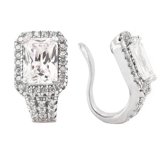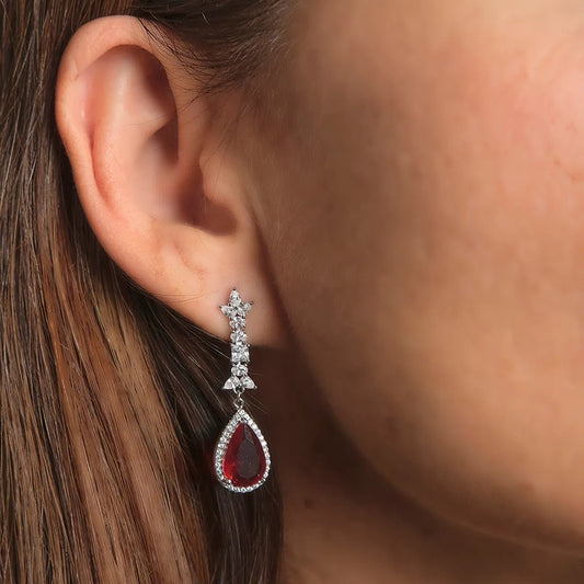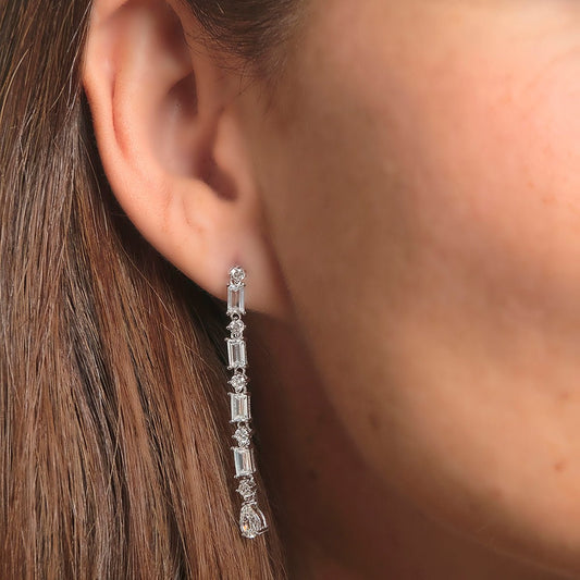 Pendientes largos en plata con 6 circonitas color esmeralda