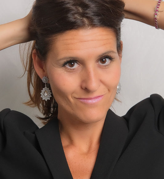 Pendientes en plata con perla en el centro y triángulo en nácar alrededor