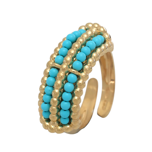 Anillo con doble fila de bolitas de turquesas