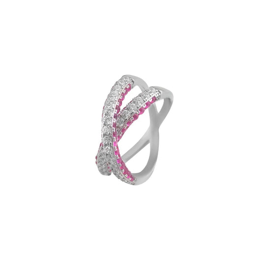 *Sold out in red, available in white and blue zircons Silver ring with double lane with colored zircons