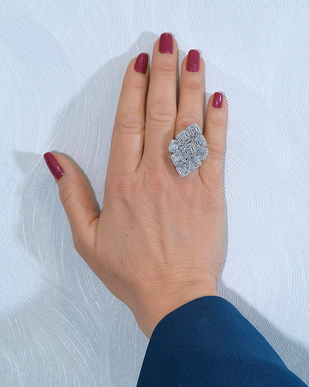 | Anillo rombo joya en plata con orlas en circonitas cuadradas en talla baguette, talla 13 |