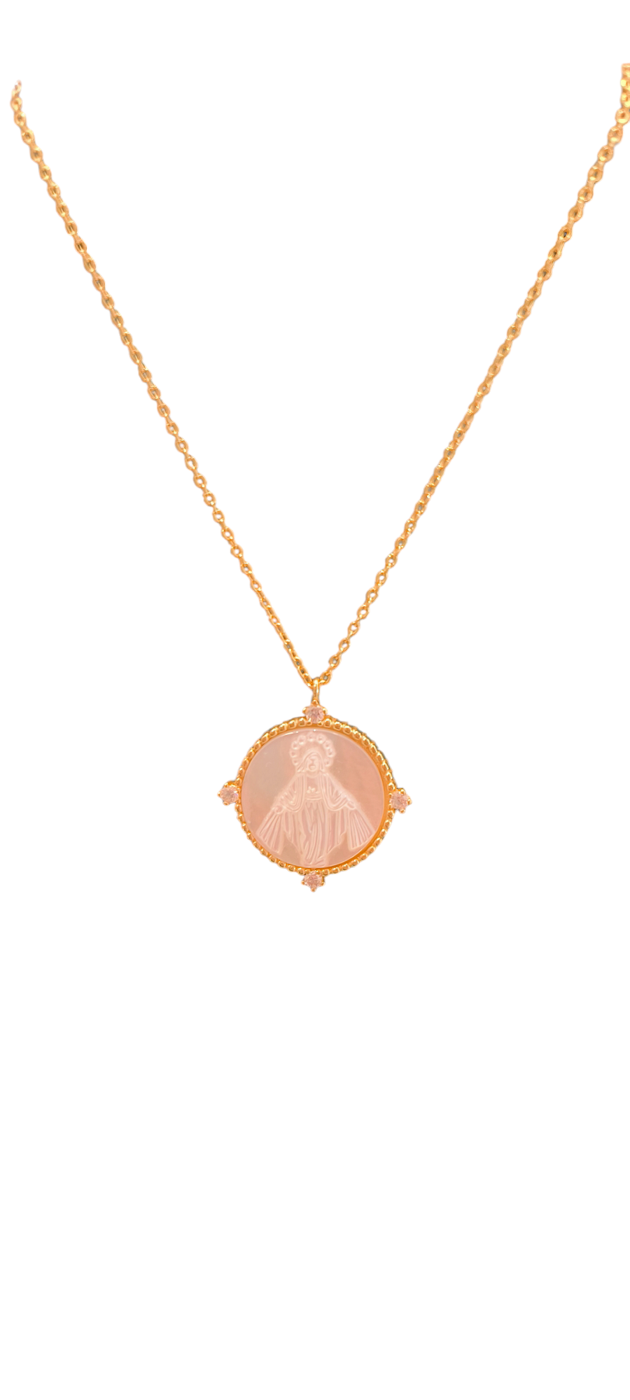 Cadena con medalla Virgen de la Milagrosa en nácar