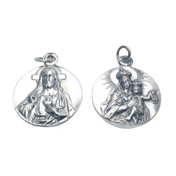 | Escapulario en plata 19mm, Virgen del Carmen y Sagrado Corazón de Jesús |