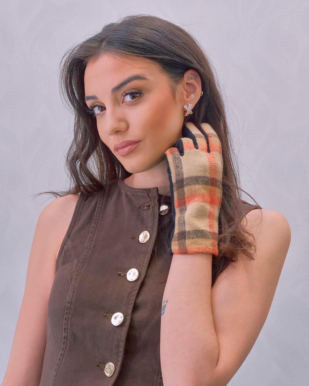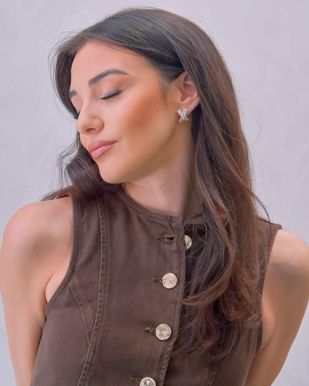 | Pendientes cruz en plata con baño de oro rosa con circonitas talla baguette, 1,5cm de alto, cierre presión |