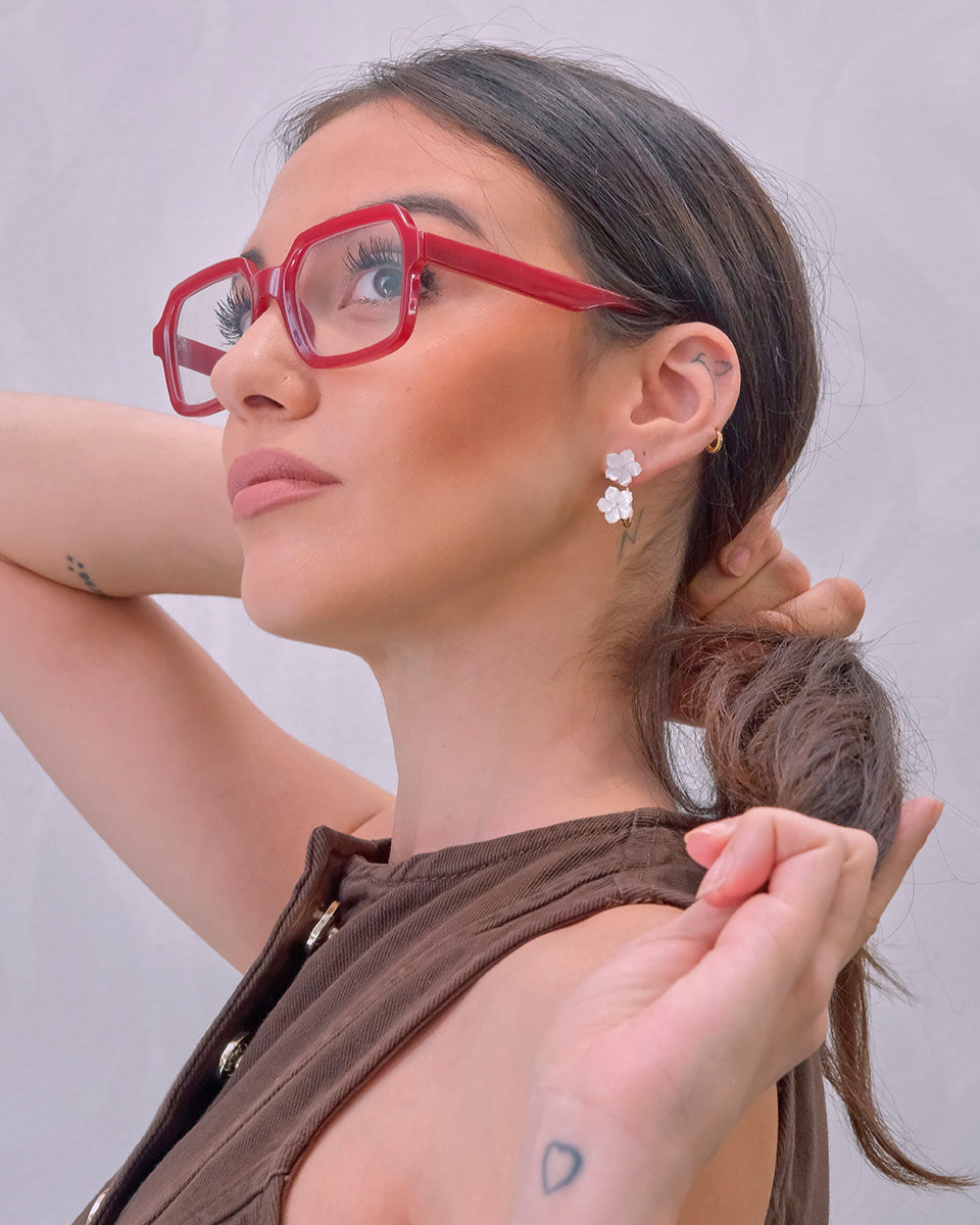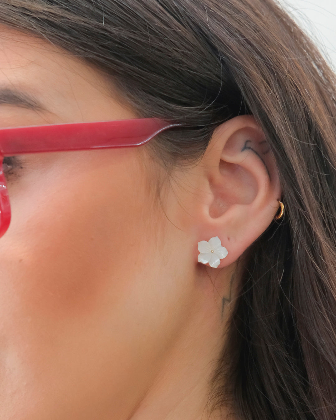 Pendientes en plata con baño de oro flores en nacar dobles alturas desmontables, cierre presión