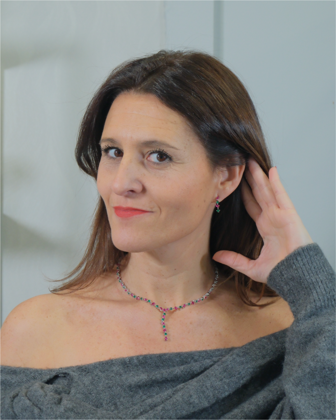 | Pendientes largos en plata co circonitas color esmeralda y rubi engastadaso en garra, cierre presión |
