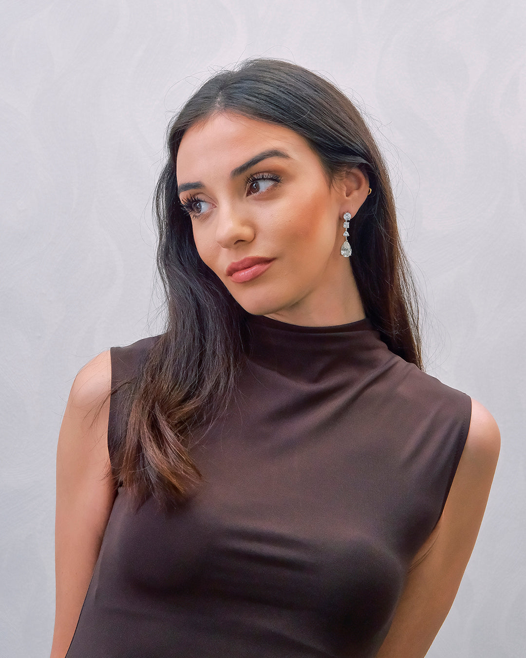 Pendientes largos en plata con piedras hidrotermal