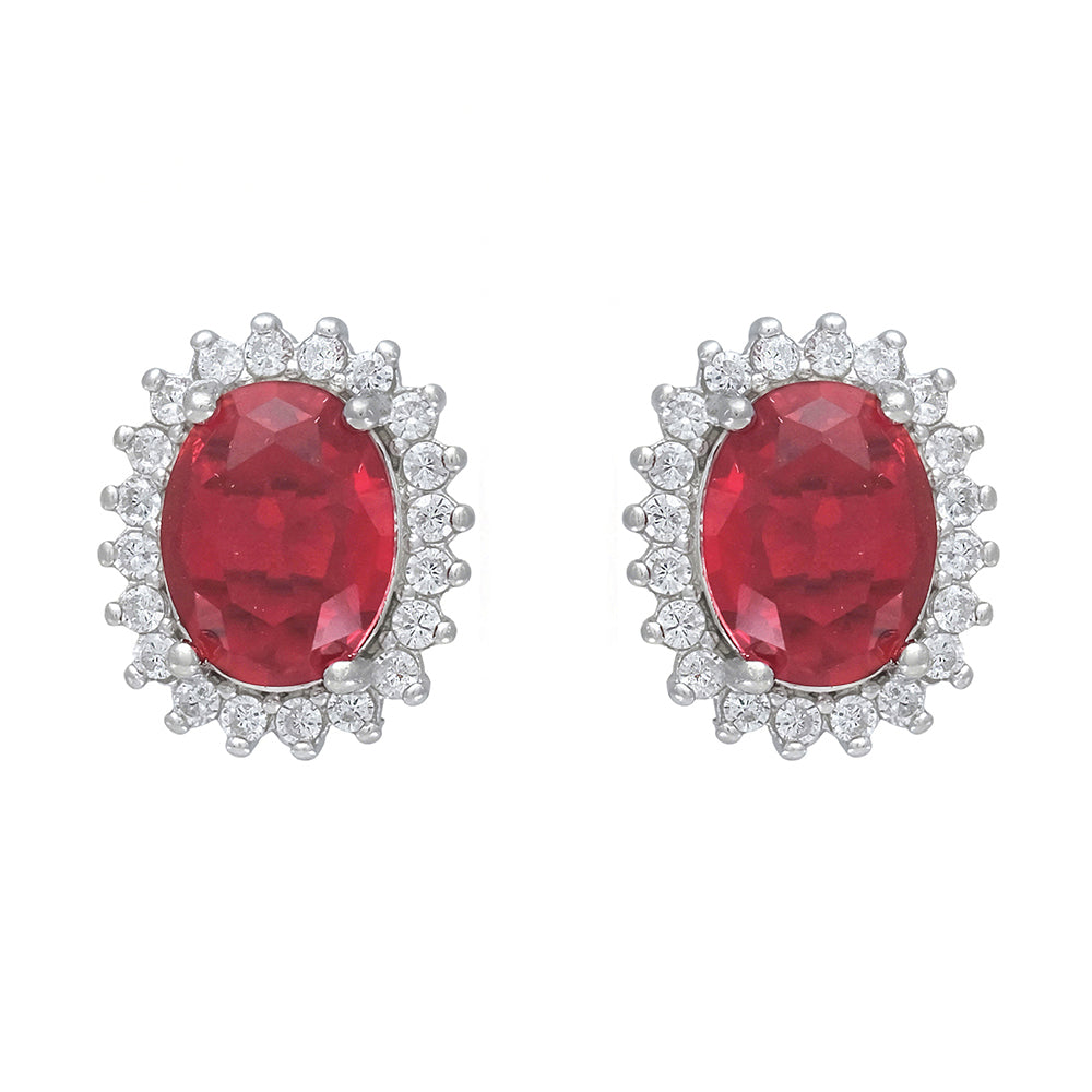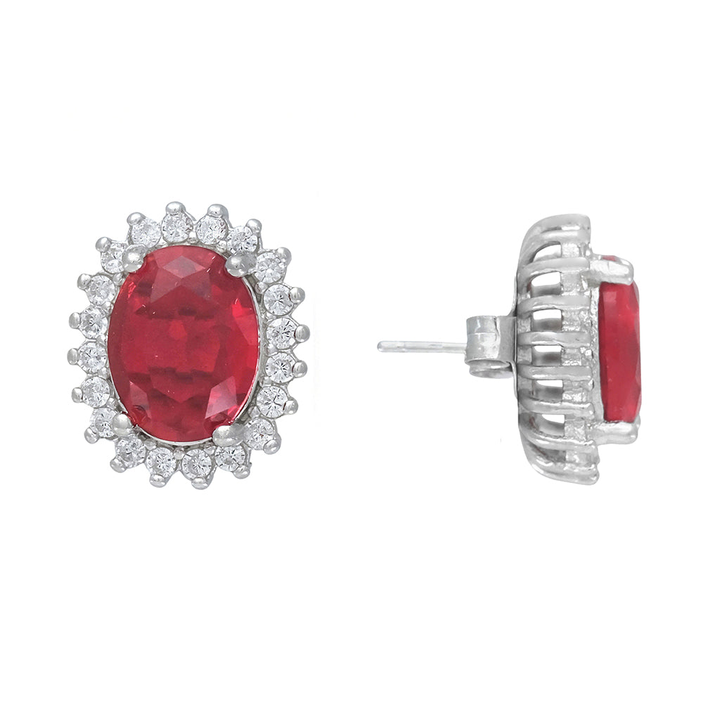 | Pendientes orla en plata con circonita central talla oval en color rubí, tamaño 12mm |
