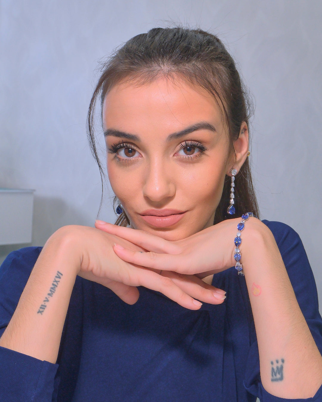 Pulsera en plata con circonitas color tanzanita talla pera con circonitas intercaladas engastadas en garra, cierre de seguridad