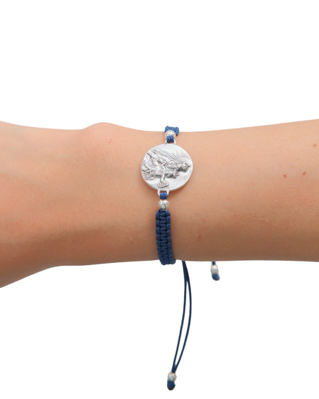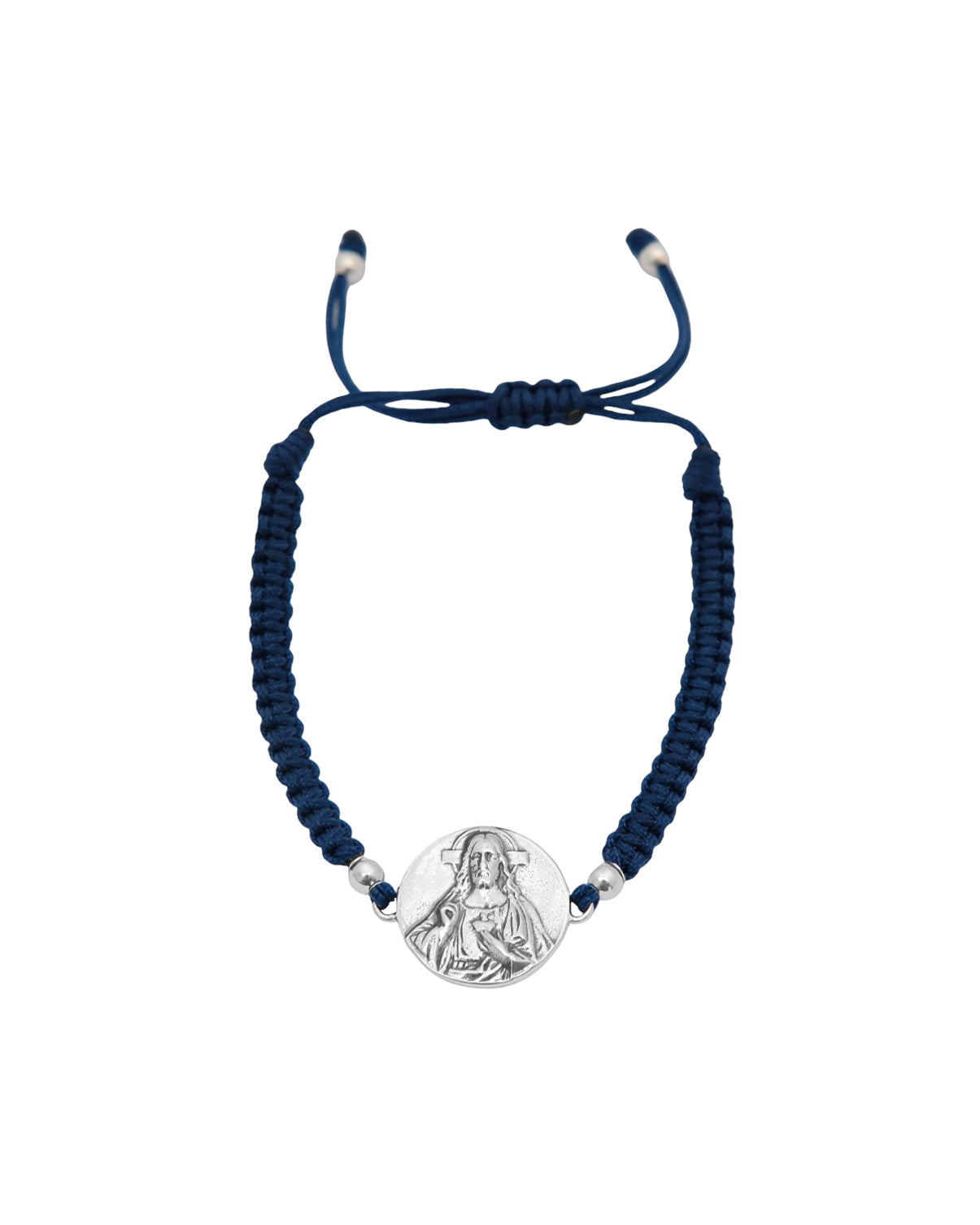 Pulsera macramé en azul marino con escapulario en plata, Virgen del Carmen y Sagrado Corazón de Jesús, ajustable